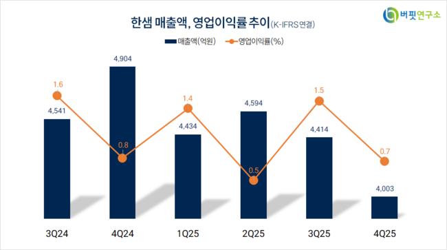 한샘. 매출액 및 영업이익률. [자료=버핏연구소]