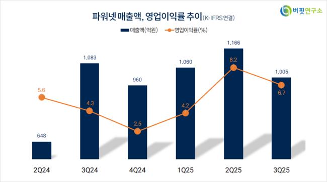 파워넷은 지난 3분기 매출액 1005억원, 영업이익 67억원으로 전년동기대비 매출액은 7.2% 감소, 영업이익은 42.6% 증가했다(K-IFRS 연결).